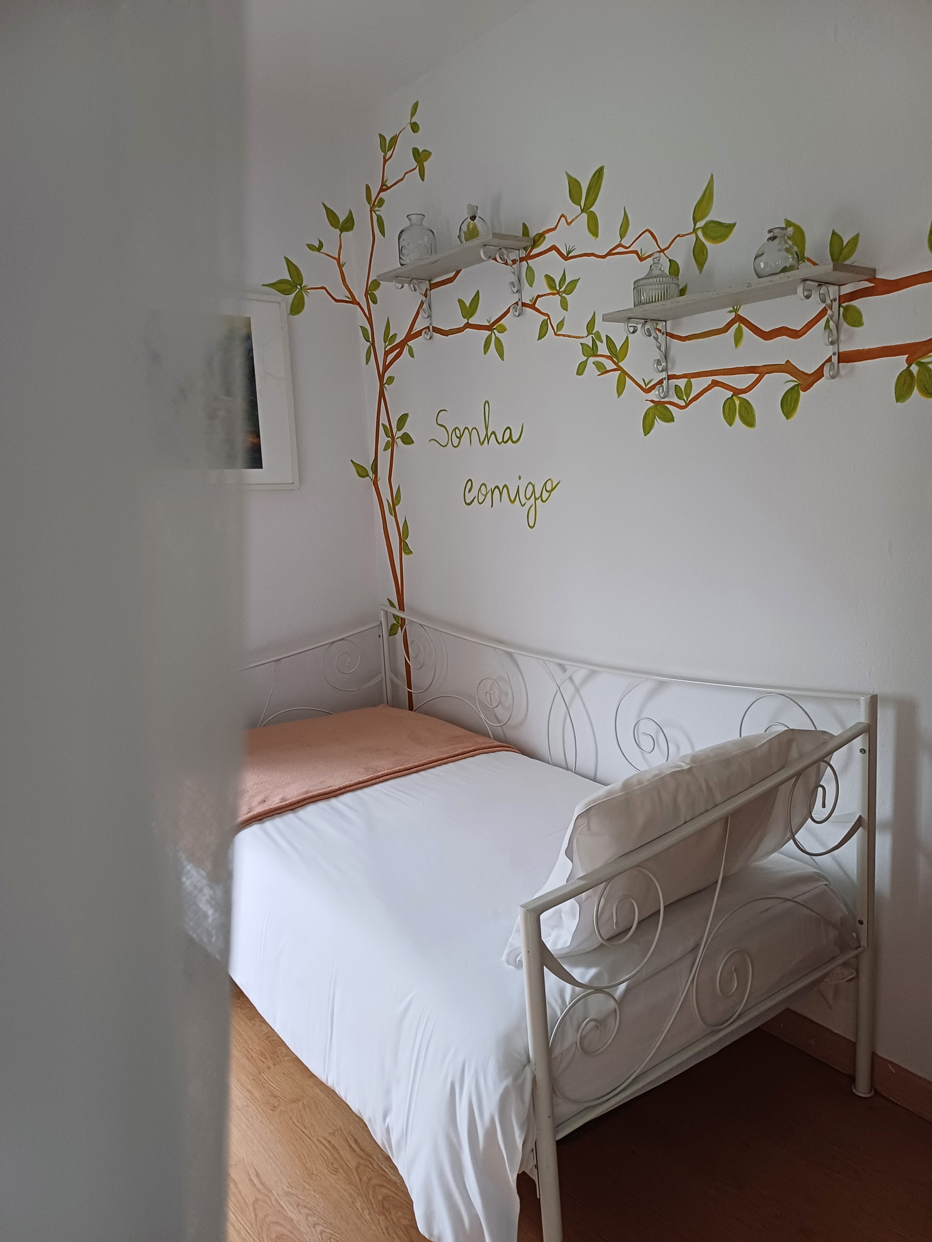 Este apartamento conta com um quarto confortável equipado com uma cama de casal e uma cama individual, garantindo um descanso reparador após um dia de exploração, recebendo até 3 pessoas, sendo ideal para pequenos grupos ou famílias.