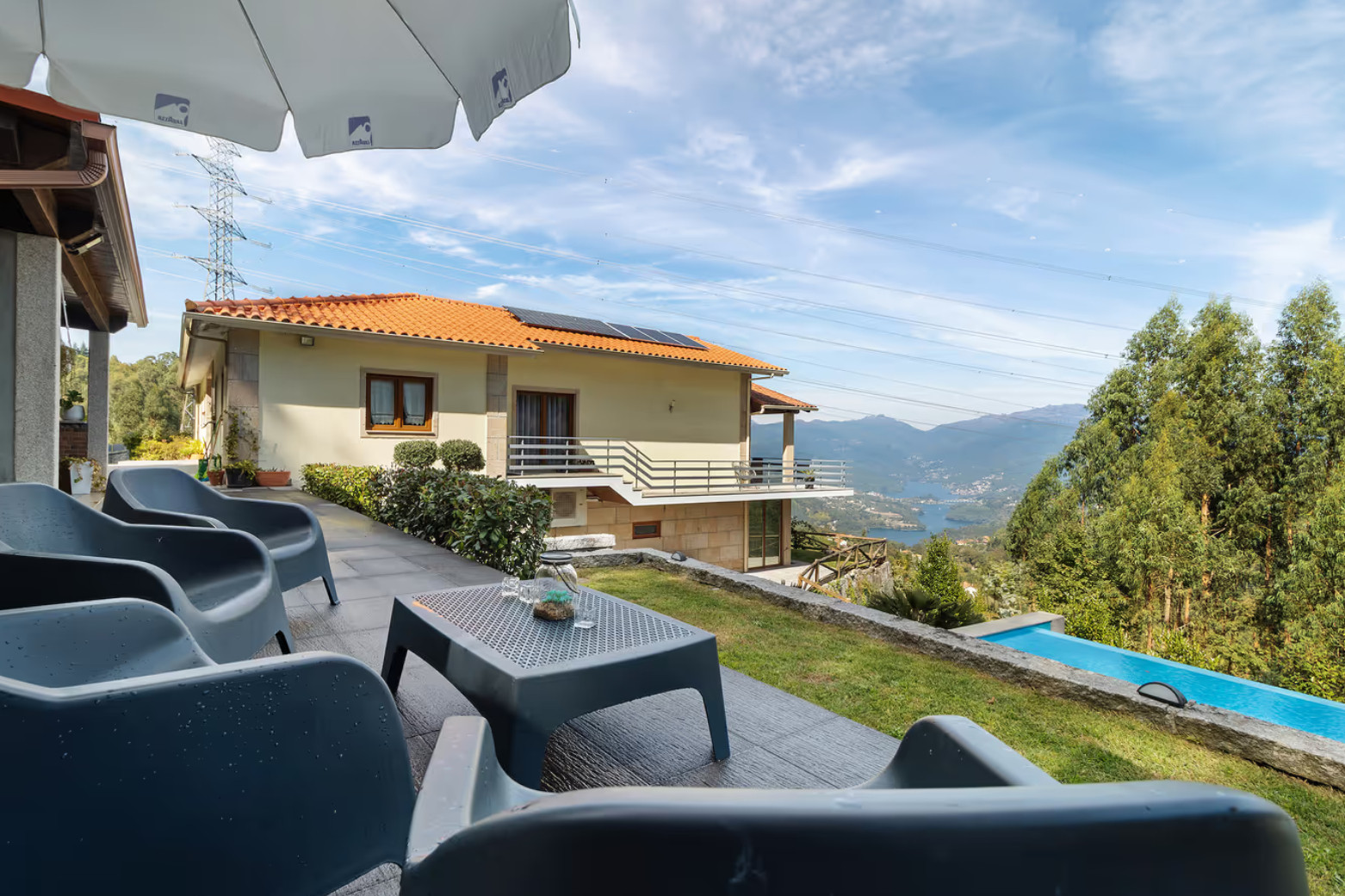 With garden furniture and a barbecue, the space invites moments of socialising and leisure. The outdoor area is perfect for enjoying meals outdoors or simply relaxing while admiring the landscape.