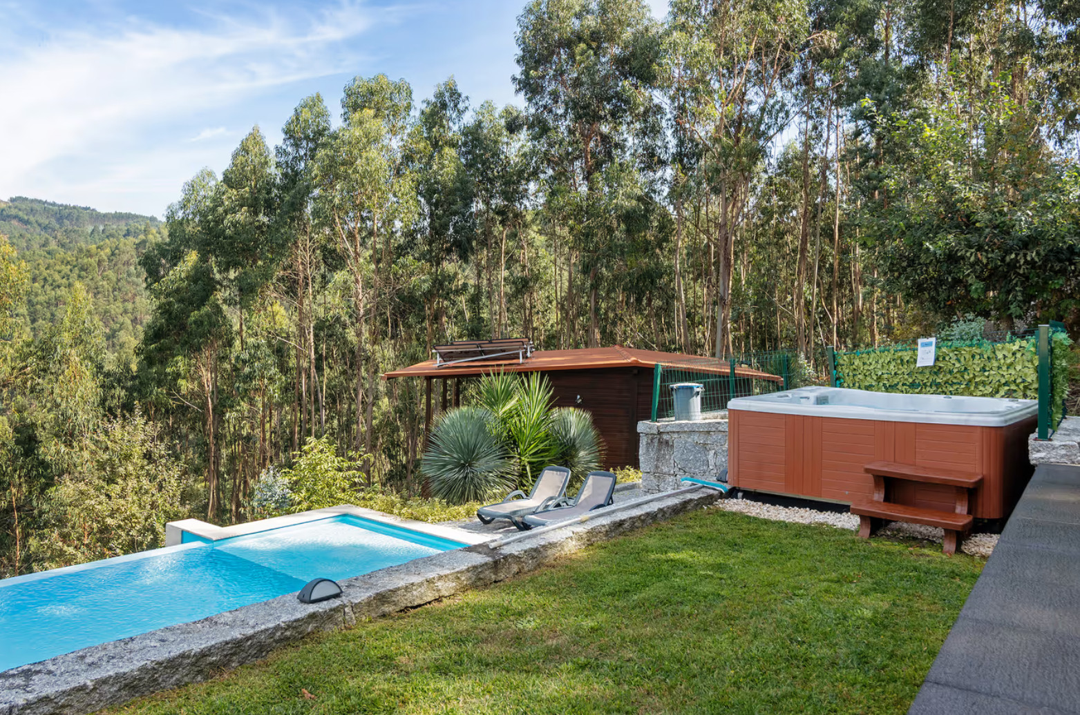 A special detail is the jacuzzi, outdoors, which promises moments of pure relaxation and well-being. The shared swimming pool complements the leisure options, allowing refreshing and fun moments.