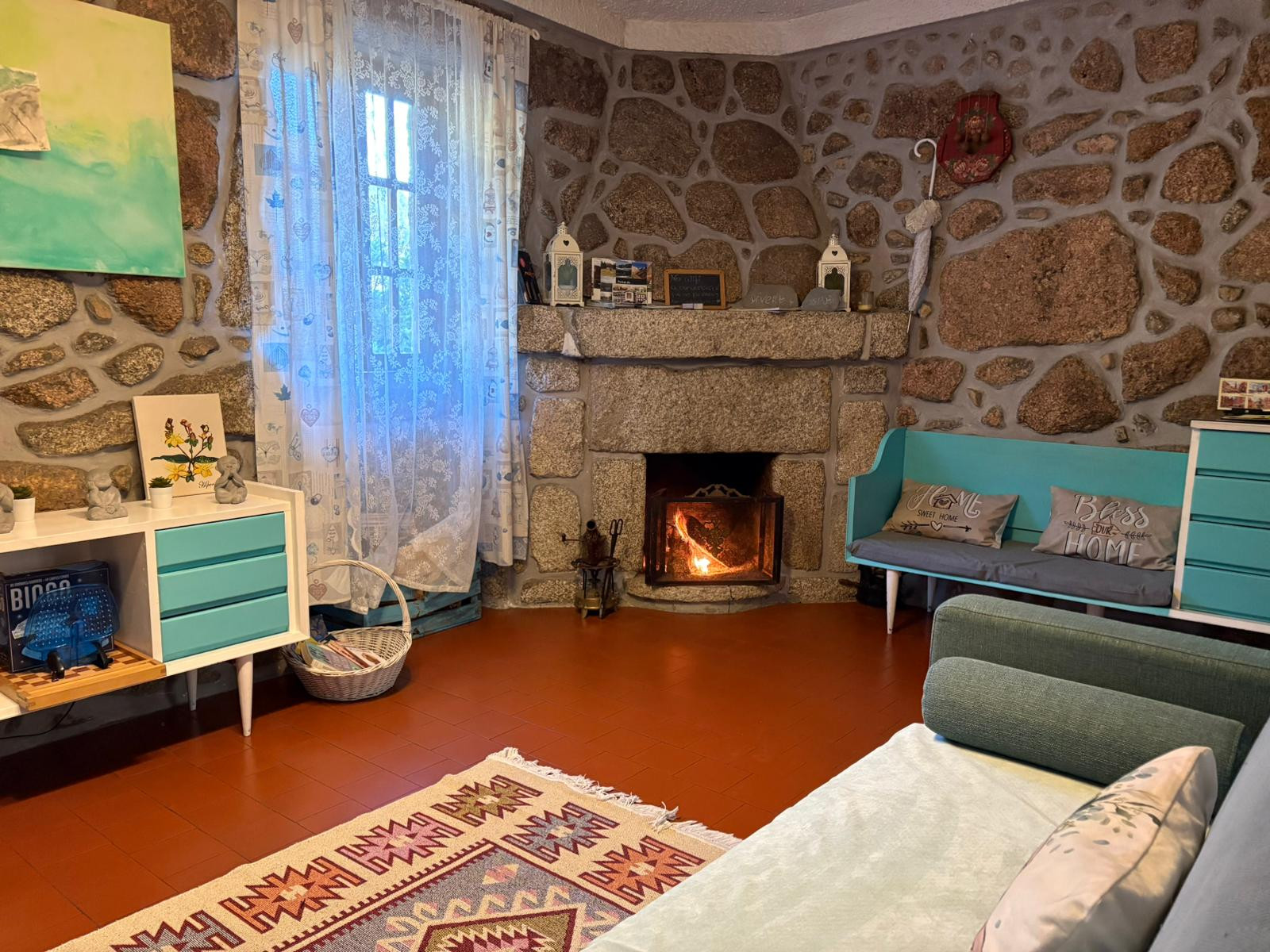 In the interior, the atmosphere is welcoming with a fireplace that provides moments of comfort on cooler days.